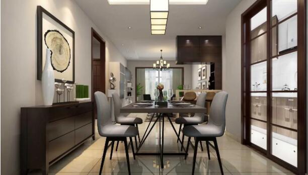 客厅到餐厅、厨房一体贯通,层次分明,同时也保持了很强的互动性,深色板材的运用,让整体空间的高级感显著增强。