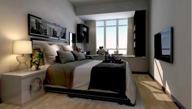 卧室有股欧式复古味道,但与整体极简风格并不冲突,卧室壁挂电视的设计,进一步增强了其私密空间效应,这点可谓颇为有趣。