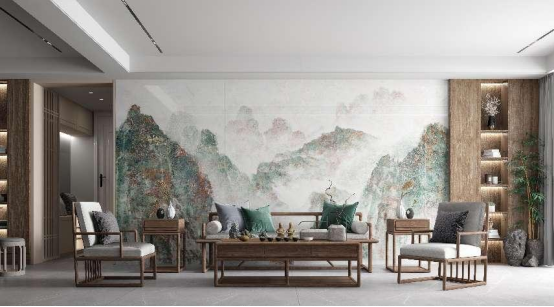 山水画纹理交融在一起,犹如暮霭中的远山,给人一种不是真山真水,却恰是山水的心境,正如“妙在似与不似之间”。